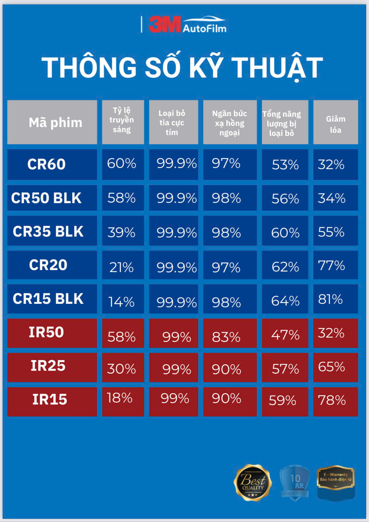 thông số chi tiết về phim cách nhiệt 3M 2025 - 2026